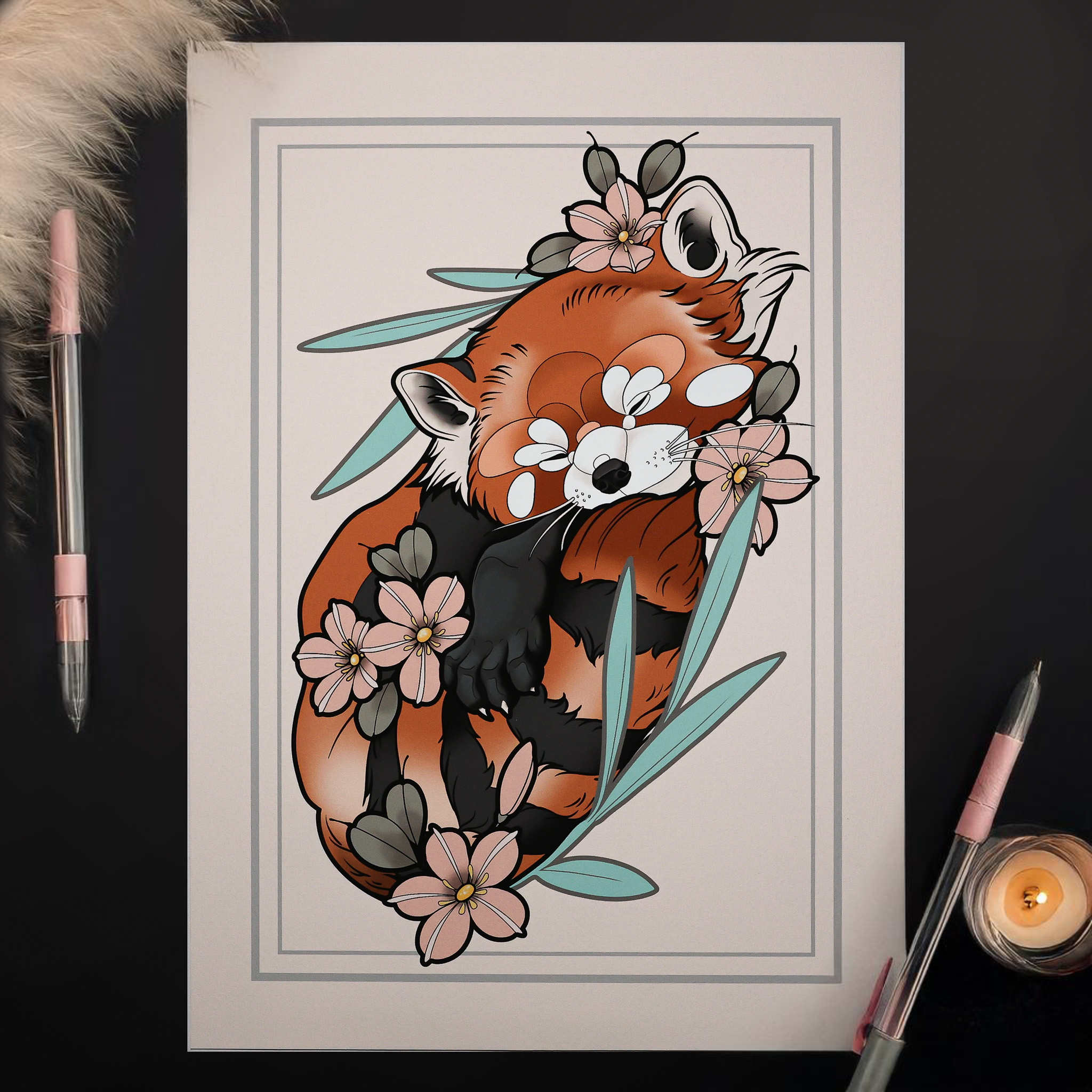 Ein Kunstprint, der Wärme ausstrahlt – perfekt für Fans von roten Pandas, ruhigen Motiven und handgezeichnetem Design.