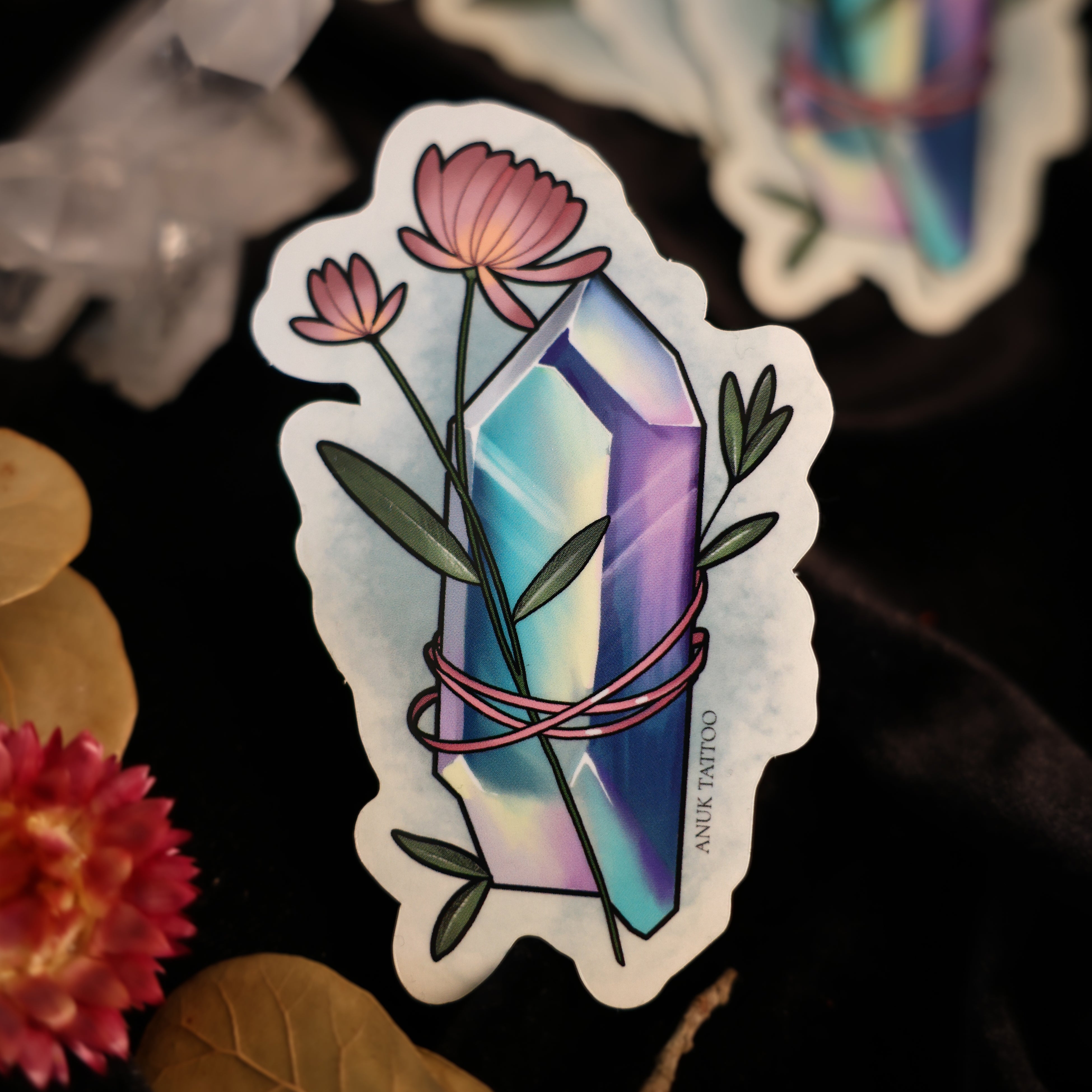 Ein zarter, klarer Aufkleber für alle, die sich mit Wasser, Kristallen und natürlicher Schönheit verbinden möchten.
